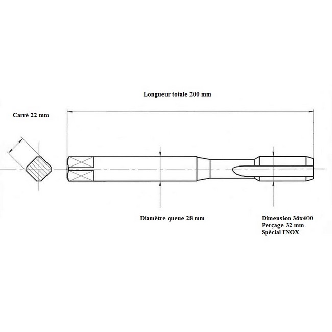 Taraud INOX métrique 36x400